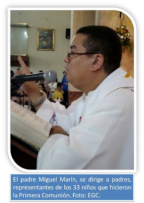 Guarenas, 23 de junio de 2008. El padre Miguel Marín alertó sobre “el derecho que tienen los niños de conocer a Dios tanto en el seno de las familias como en los centros educativos, porque esa es la única manera de formarlos en su rol de ciudadanos honestos, responsables; y como cristianos coherentes con los postulados de la fe católica”. El planteamiento lo hizo el domingo pasado durante la celebración eucarística en la Catedral “Nuestra Señora de Copacabana”, en Guarenas, con motivo de la Primera Comunión en la que participaron treinta y tres alumnos de sexto grado “B”, adscritos al Colegio Parroquial “Jesús María Marrero”, de esta ciudad.